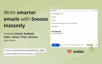 Oprócz poprawy treści e-maili, Snoooz oferuje również funkcje automatycznych odpowiedzi, kategoryzacji oraz inteligentnych odpowiedzi na wiadomości. Idealne dla zespołów sprzedażowych, obsługi klienta oraz profesjonalistów, którzy chcą zaoszczędzić czas na zarządzaniu skrzynką odbiorczą. Narzędzie jest również doskonałym wsparciem dla osób, które nie są rodzimymi użytkownikami języka angielskiego, pomagając im brzmieć naturalnie w korespondencji.